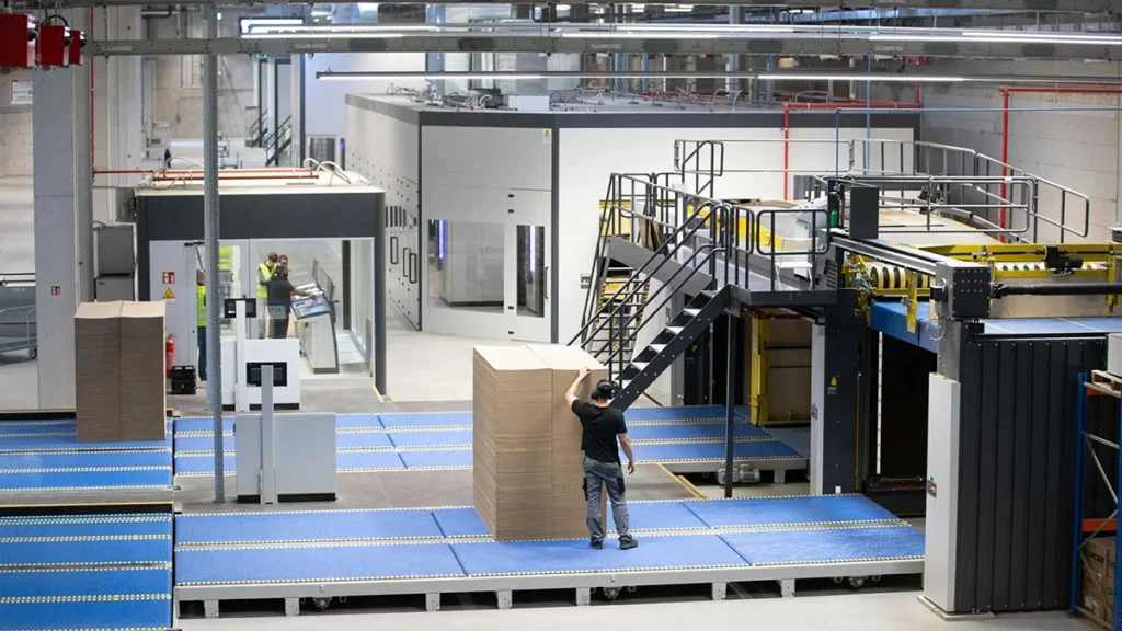 Die Erfolgsgeschichte der klugen Kiste begann 2010 in Schüttorf mit einem Hochleistungswerk für große Mengen: Bis 2023 wurden hier auch gerne schon mal 30.000 Transport- und Versandkartons pro Stunde auf einer Linie produziert.