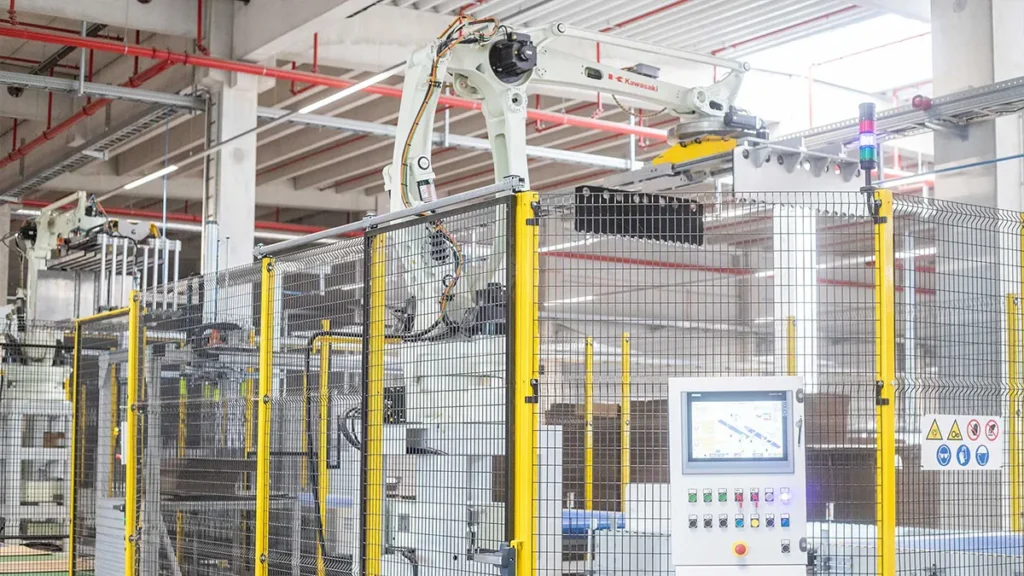 Auch wenn unser Maschinenpark im Vergleich zum Branchenschnitt noch jung ist, investieren wir kontinuierlich in neue Anlagen, die nicht nur effizienter sind, sondern auch mehr können – und damit nicht nur unsere Produktionskapazität von Wellpapp-Faltkisten nahezu verdoppeln, sondern auch die Bandbreite an möglichen Produkten. Dass alle Produktionsschritte vollautomatisiert ablaufen, versteht sich von selbst. Mit dem neuen Werk gibt es nun auch Wellpappe made by Packners – dank der nagelneuen Wellpappenanlage, die unsere fünf Produktionsstraßen nun mit ein- oder zweiwelliger Wellpappe in unterschiedlichen Konstruktionen just in time versorgt.
